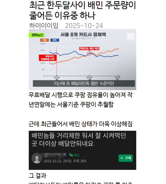 최근 한두달사이 배민 주문량이 줄어든 이유중 하나