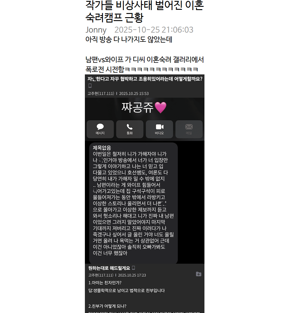 작가들 비상사태 벌어진 이혼숙려캠프 근황