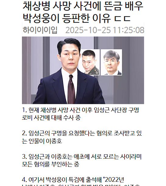 채상병 사망 사건에 뜬금 배우 박성웅이 등판한 이유 ㄷ...
