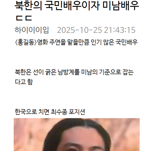 북한의 국민배우이자 미남배우 ㄷㄷ