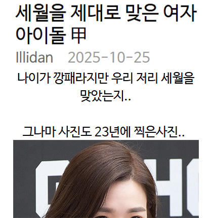 세월을 제대로 맞은 여자아이돌 甲