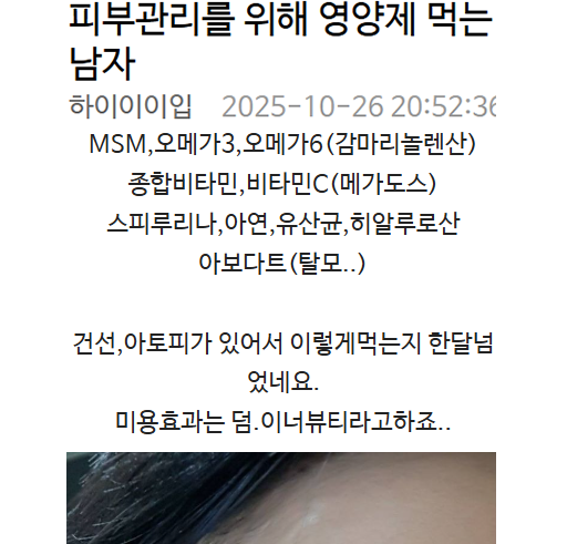 피부관리를 위해 영양제 먹는 남자