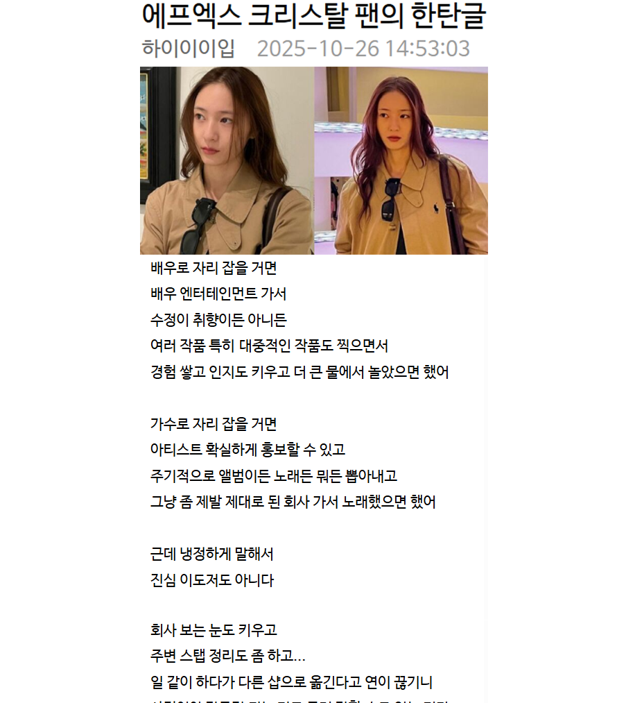 에프엑스 크리스탈 팬의 한탄 글