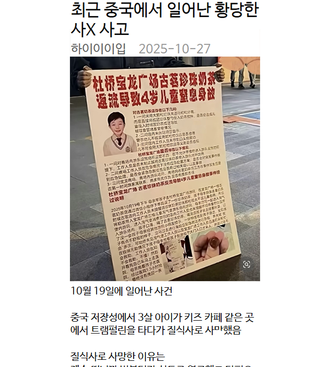 최근 중국에서 일어난 황당한 사X 사고