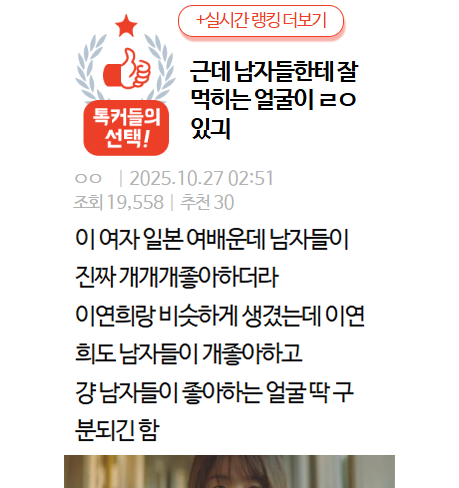 근데 남자들한테 잘 먹히는 얼굴이 ㄹㅇ 있음