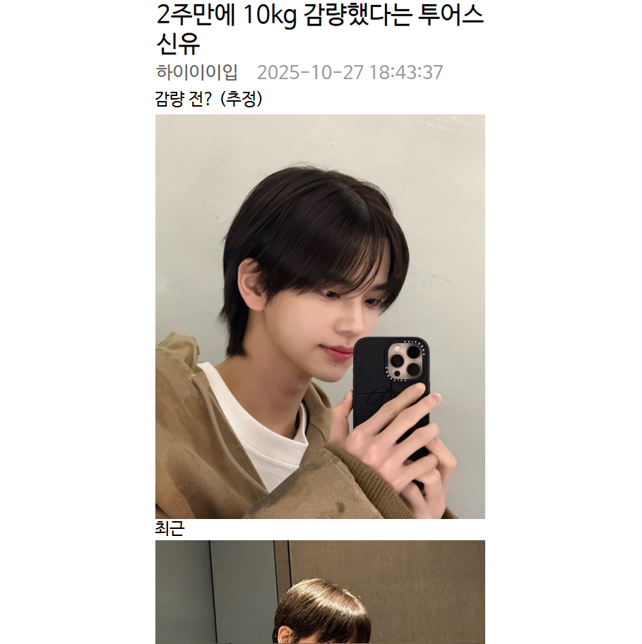 2주만에 10kg 감량했다는 투어스 신유