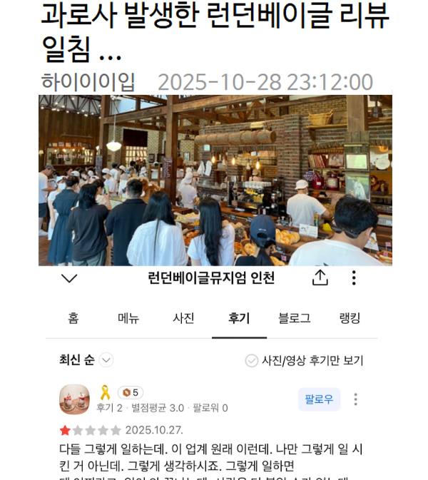 과로사 발생한 런던베이글 리뷰 일침 ...
