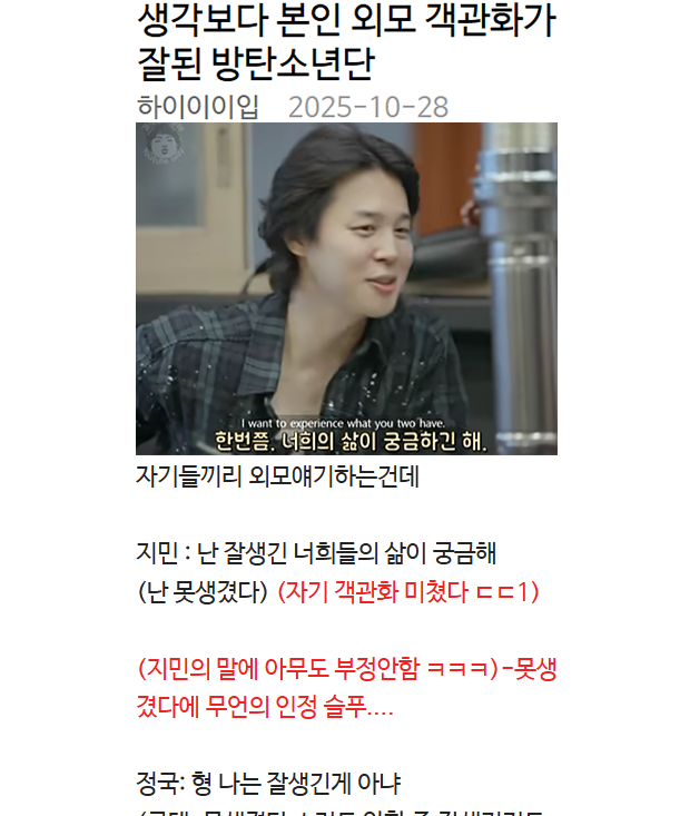 생각보다 본인 외모 객관화가 잘된 방탄소년단