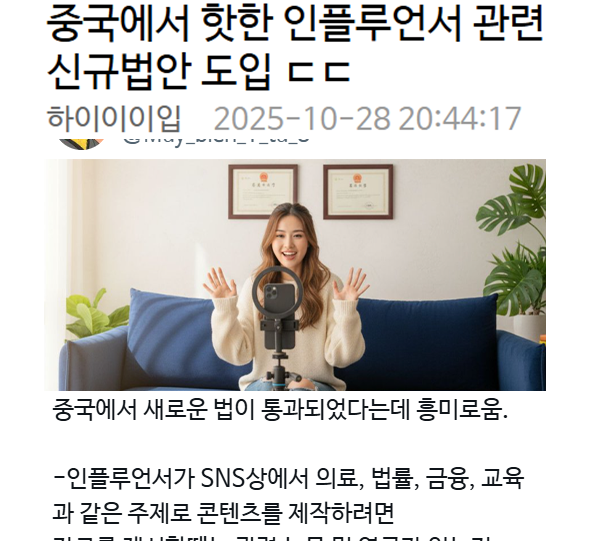 중국에서 핫한 인플루언서 관련 신규법안 도입 ㄷㄷ