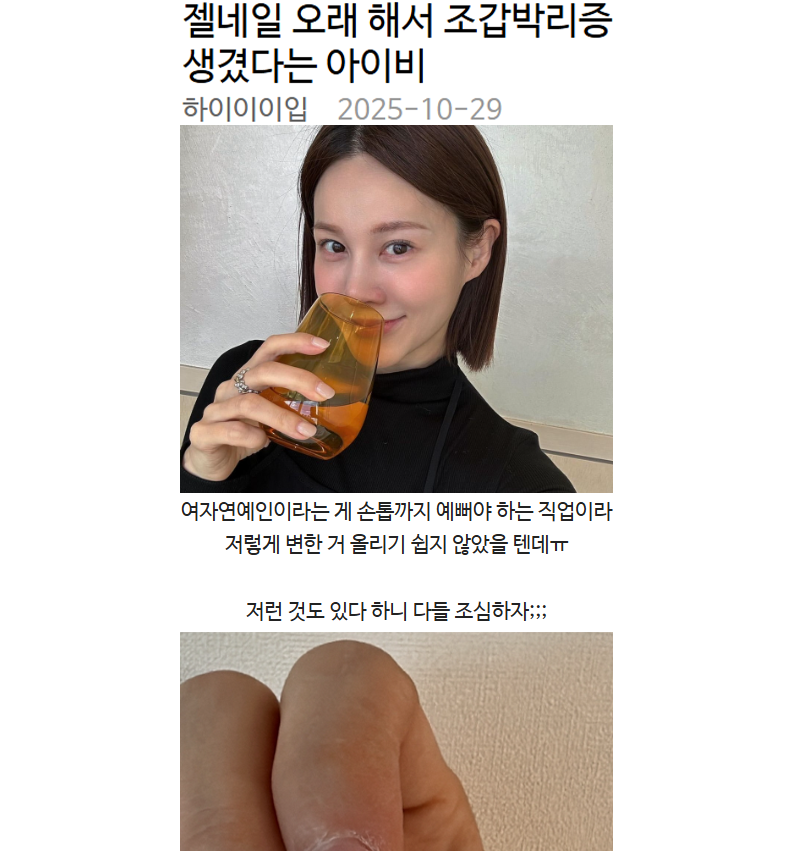 젤네일 오래 해서 조갑박리증 생겼다는 아이비