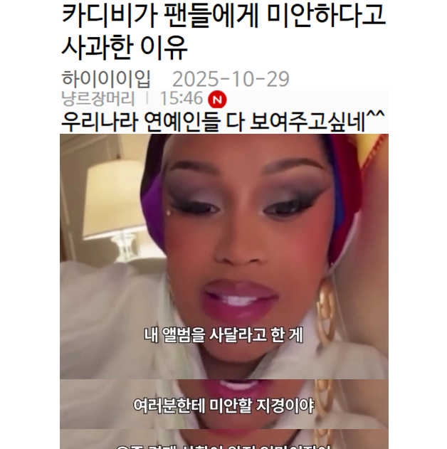 카디비가 팬들에게 미안하다고 사과한 이유