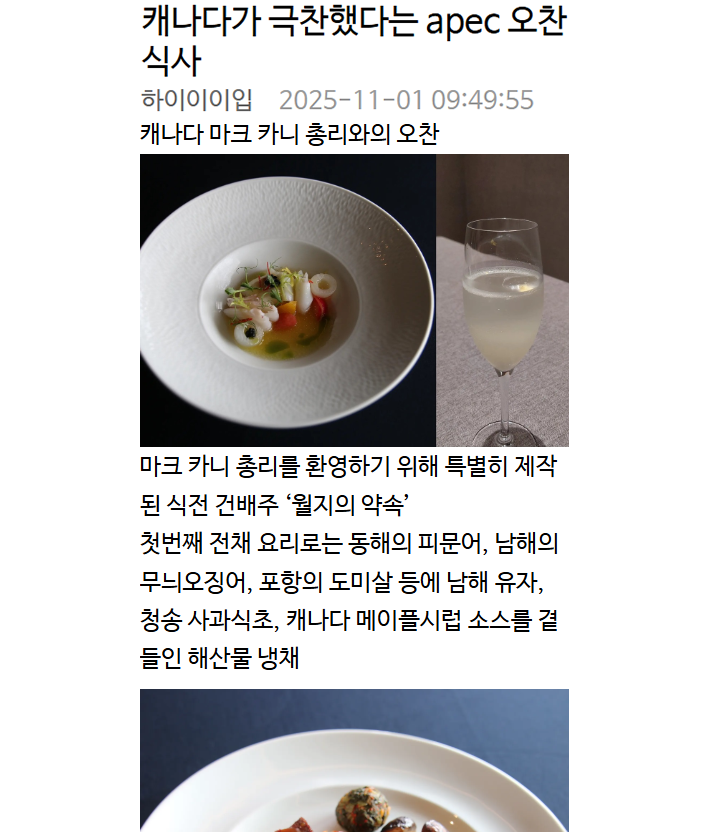 캐나다가 극찬했다는 apec 오찬 식사