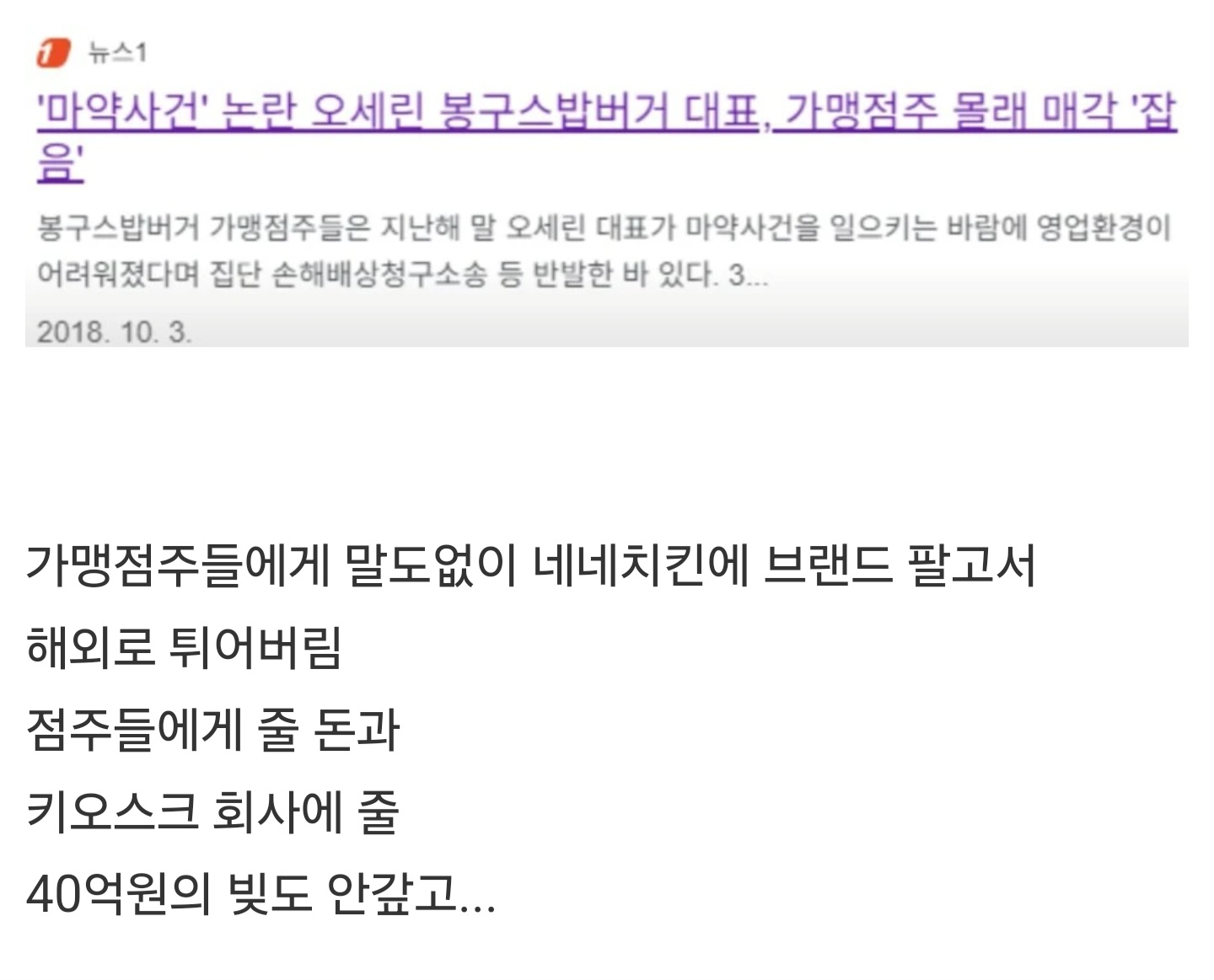 전국에 1000개 이상 가맹점이 있던 봉구스밥버거가 한방에 사라져버린 이유