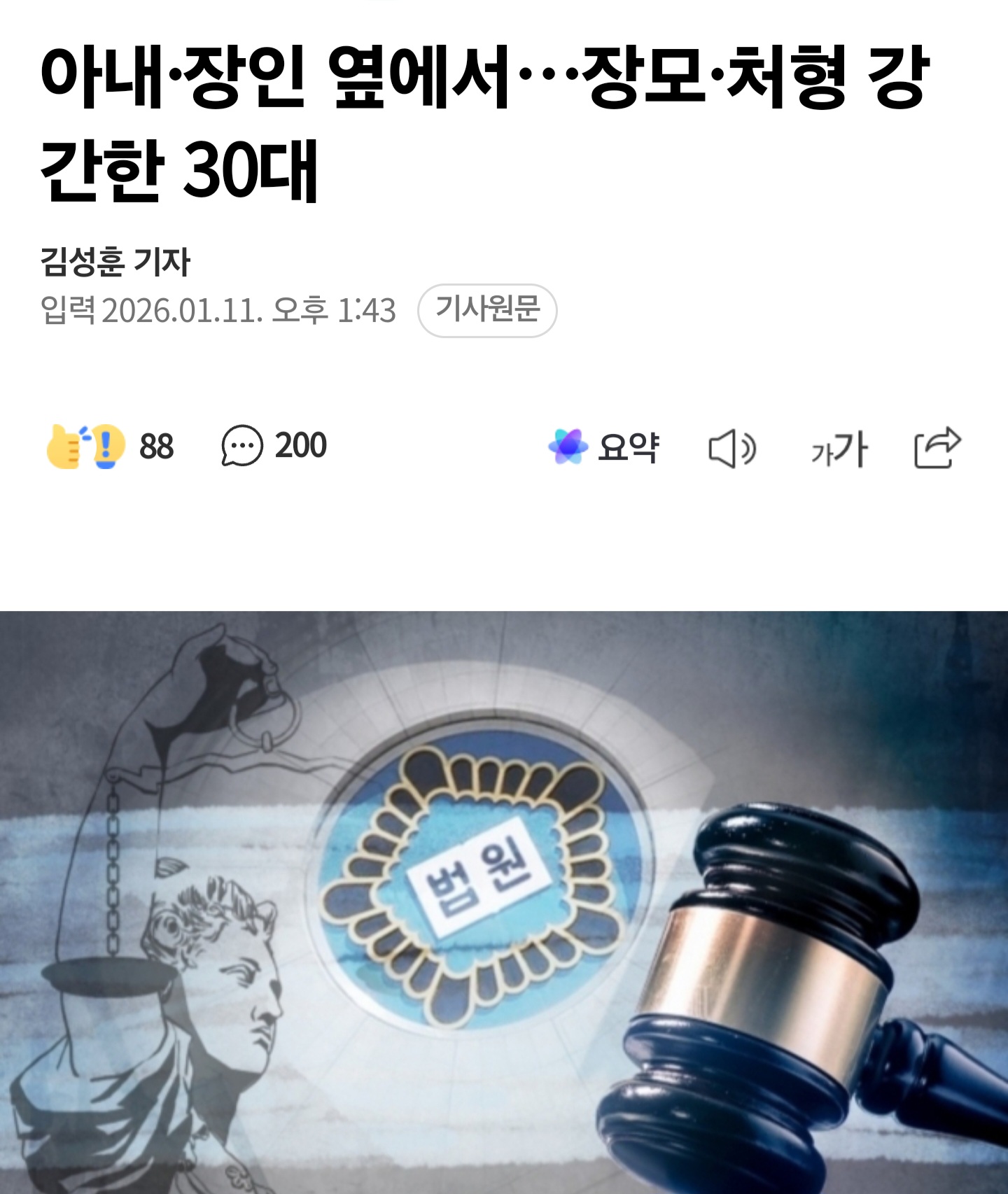 아내·장인 옆에서…장모·처형 강ㄱ한 30대