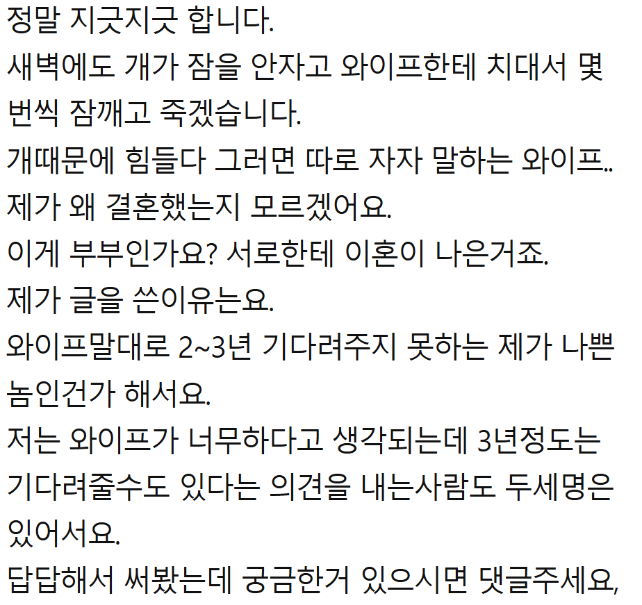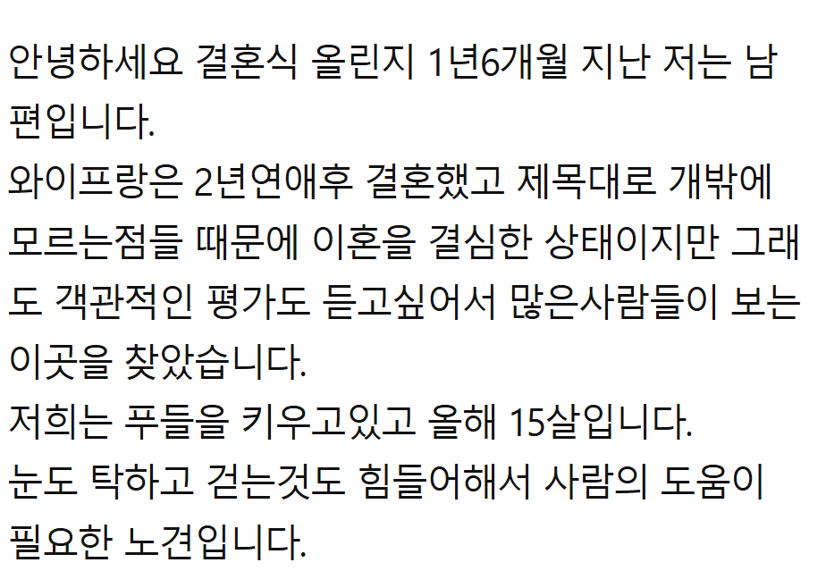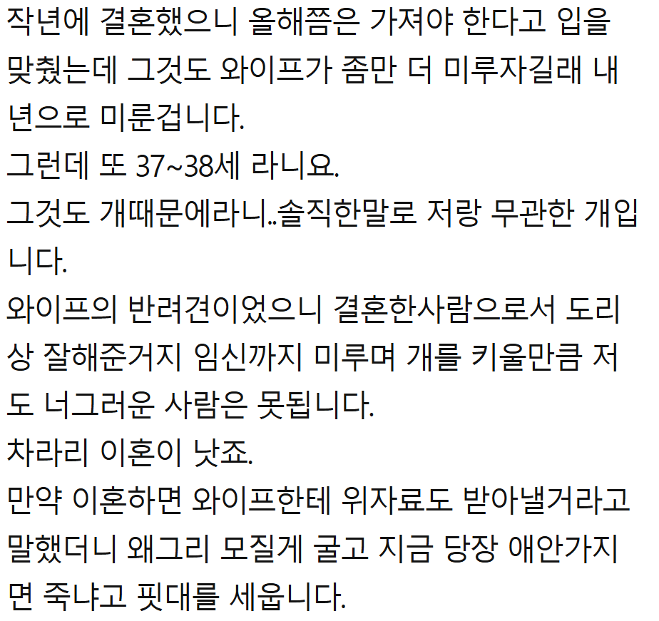 개밖에 모르는 와이프와 이혼한다는 남자