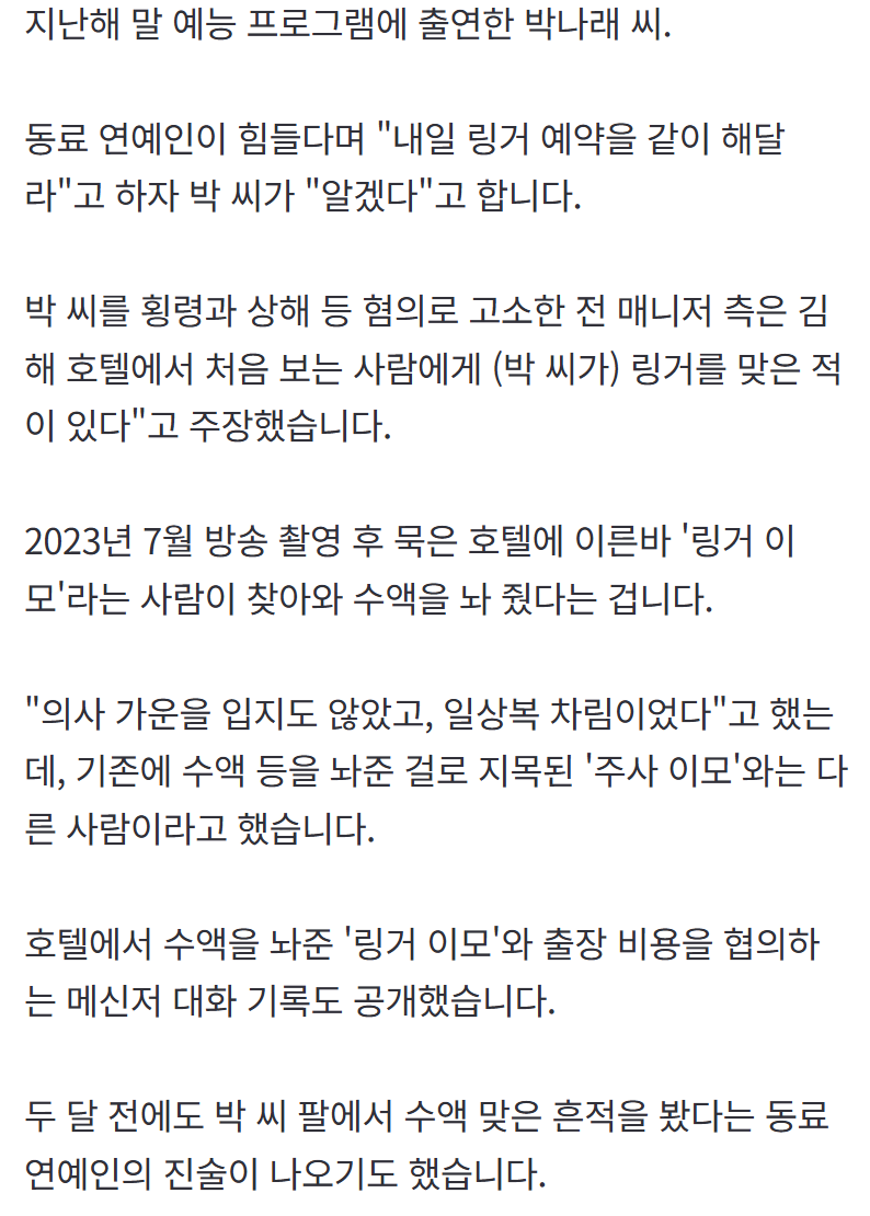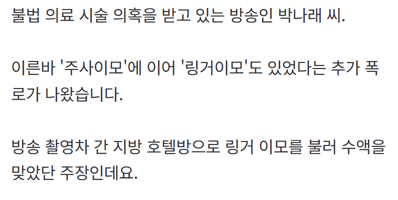 박나래 전 매니저 추가 폭로 불법 링거 이모도 있었다 ㄷㄷㄷ