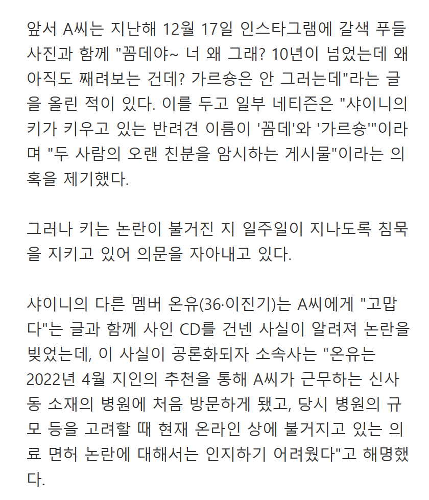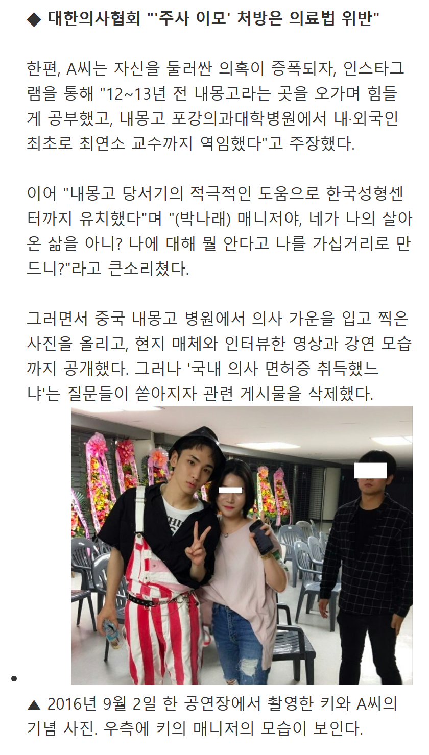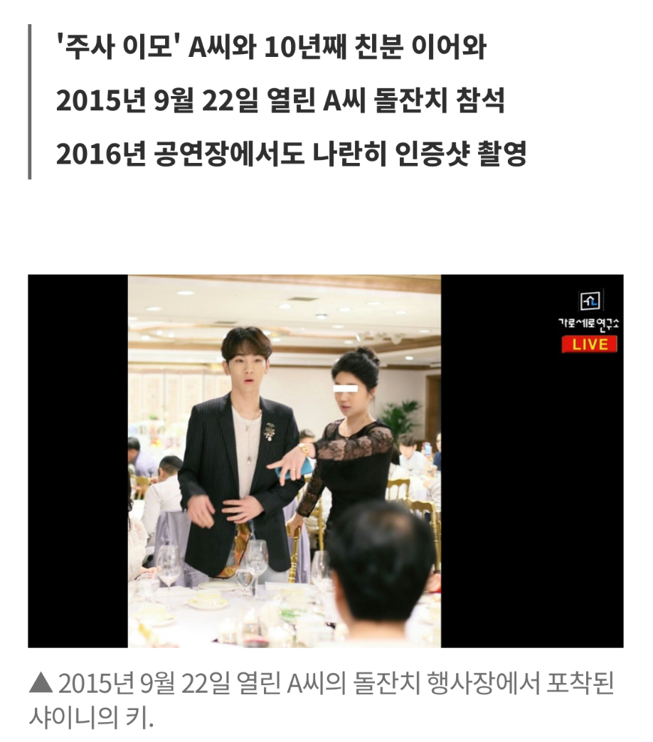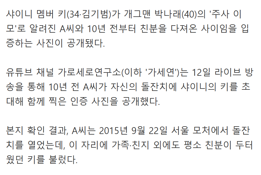 10년 전 '박나래 주사 이모' 돌잔치도 참석했던 샤이니 키, A씨 딸과 기념 사진도 찍어